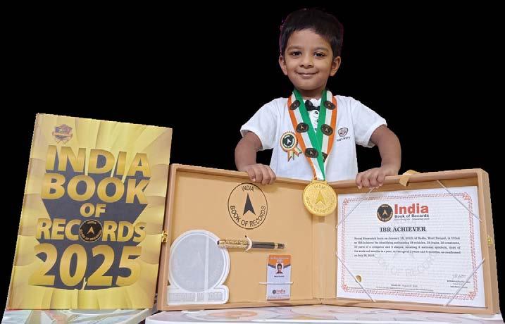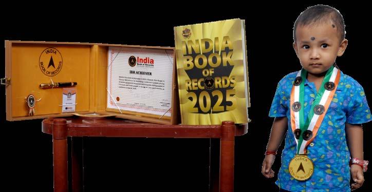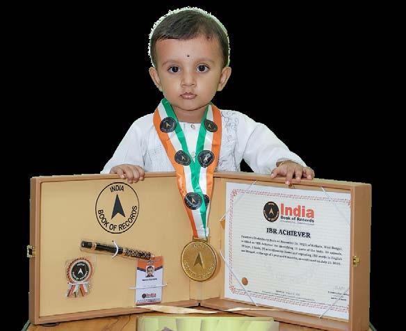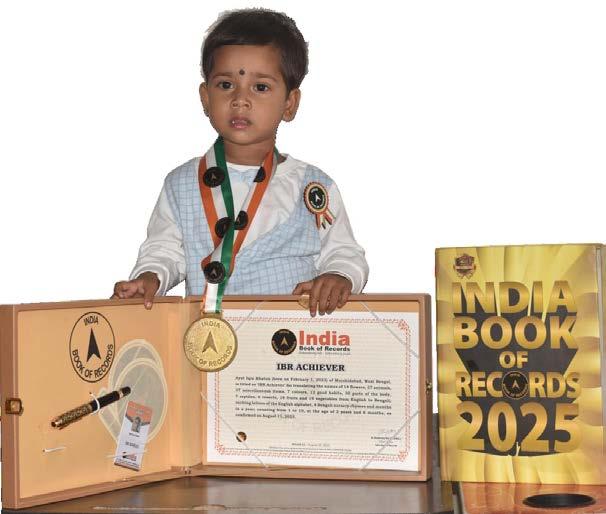 Swarnavo Chakraborty (born on November 16, 2023) of Kolkata, West Bengal, is titled as ‘IBR Achiever’ for identifying 15 parts of the body, 25 animals, 10 toys, 3 birds, 70 miscellaneous items and repeating 150 words in English and Bengali, at the age of 1 year and 8 months, as confirmed on July 23, 2025.