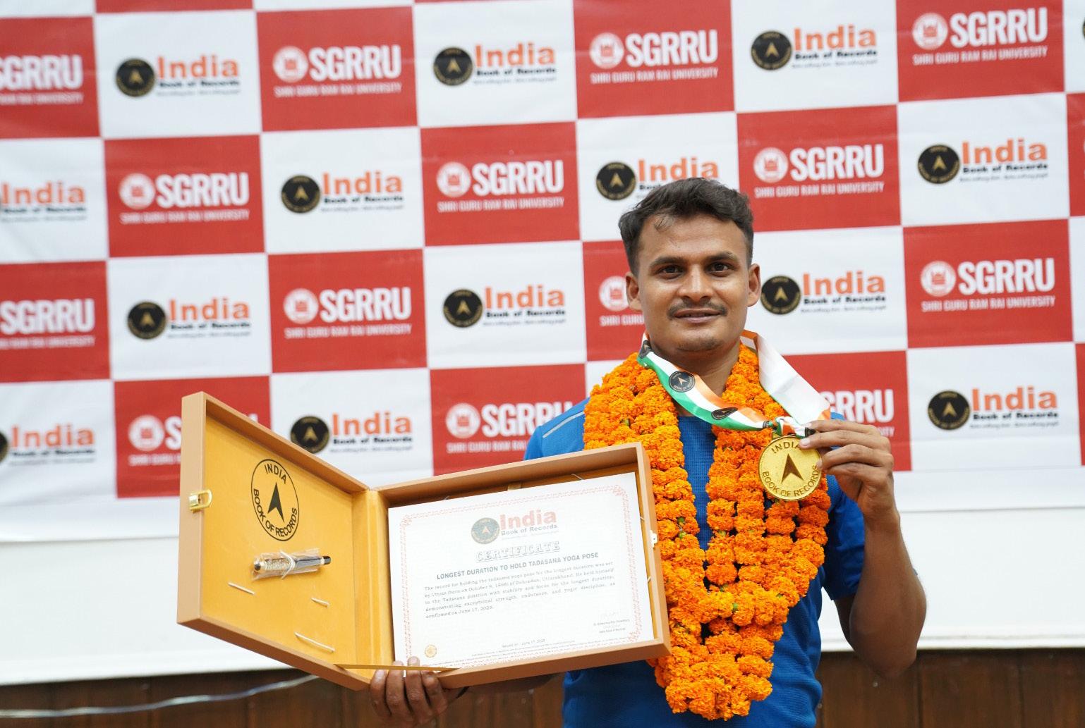 The record for performing the Supta Dimbasana yoga pose for the longest duration was set by Patel Trusha Rajendrakumar (born on February 6, 2018) of Ahmedabad, Gujarat. She performed the Supta Dimbasana yoga pose (Advance Back Bending asana or Flexing the Spine pose) for 15 minutes, at the age of 7 years, 5 months and 18 days, as 2025.