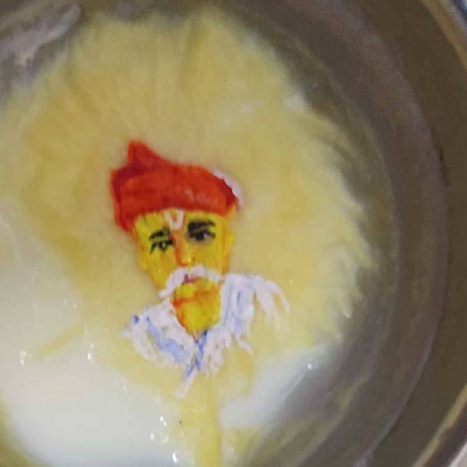 Maximum miniature images of national symbols painted on a single sheet by an individual