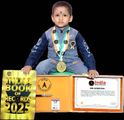 Purvith Bishnu (born on July 28, 2023) of North 24 Parganas, West Bengal, is titled as ‘IBR Achiever’ for identifying and naming 20 shapes, 26 letters of the English alphabet, 23 animals, 11 parts of the body, 5 fruits, 5 vegetables and counting from 1 to 20, at the age of 1 year and 11 months, as confirmed on July 14, 2025.