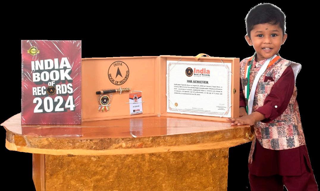 Vinod Subhash Sanap of Buldhana, Maharashtra, was felicitated at the IBR Convocation for reciting all 118 elements of the periodic table in proper order in 22 seconds and 47 milliseconds at the age of 13 years and 6 months. Born on January 17, 2011, Vinod has a sharp mind and a special interest in science.