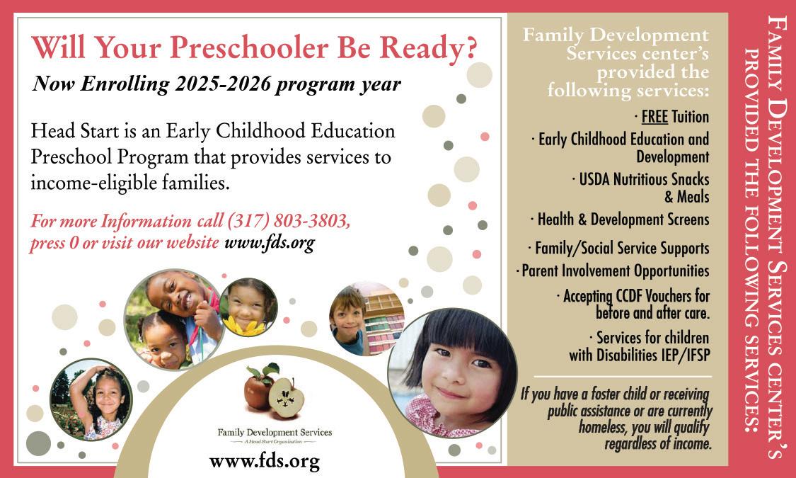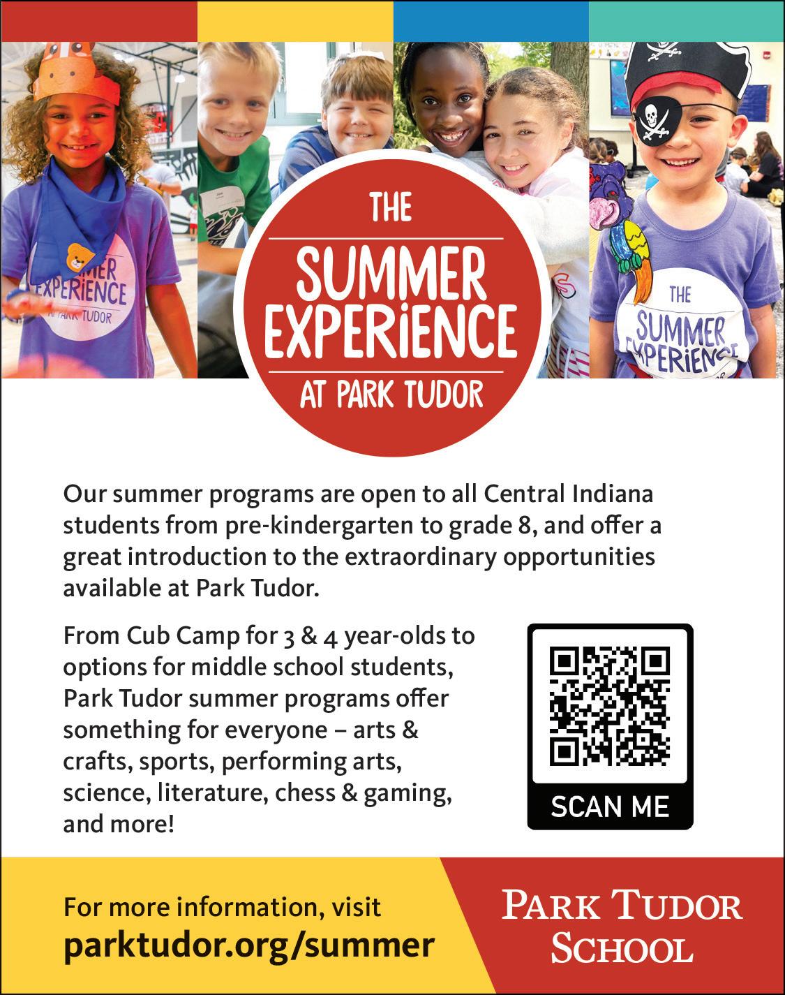 Indy Parks has officially opened registration for our 2025 Summer Day Camps, with new park locations and programs to fit a variety of ages and interests. Consider enrolling your little ones at the new Frederick Douglass Park Family Center, explore environmental camp opportunities at Southeastway, Eagle Creek, and Holliday Parks, grow artistic passions at specialized Garfield Park Arts Center programs, or find your nearest park by visiting parks.indy.gov/programs/ indy-parks-summer-daycamps/. Did you know that Indy Parks offers a Day Camp Scholarship program to assist families in need? To see whether you may qualify and to submit an application, visit parks. indy.gov/programs/indyparks-summer-day-camps/2 025daycampscholarships/