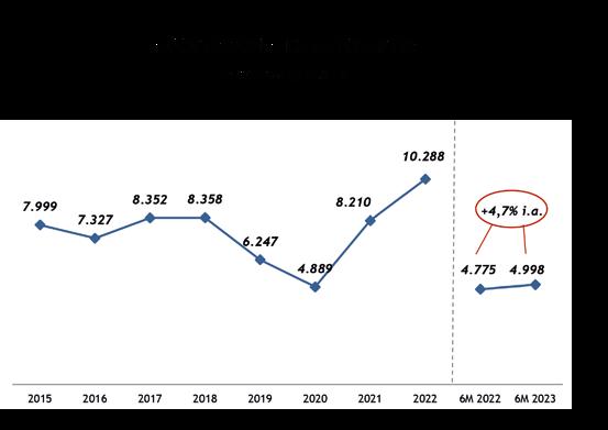 Este incremento se debió principalmente al aumento registrado en las importaciones de autopartes, que pasaron de US$ 4.775 millones entre enero y junio de 2022 a US$ 4.998 millones en el mismo periodo de este año (+4,7%).