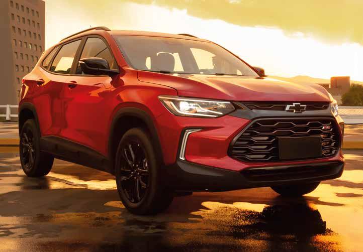 sores exteriores en negro. A todos estos elementos estéticos se le suman llantas de 17” con acabado “High Gloss”, faros delanteros full LED con máscara negra, luces LED posteriores y techo panorámico corredizo para incrementar la luminosidad y ventilación del habitáculo. En el interior, Tracker RS se distingue con asientos, volante, paneles de puertas y consola en acabado negro Premium con costuras de adorno rojas, junto al característico equipamiento de conectividad e info-entretenimiento MyLink con proyección inalámbrica, sistema de asistencia OnStar y aplicación