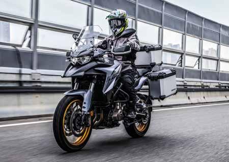de 37 Nm a 7.500 rpm con inyección electrónica. La iluminación es Full LED, tiene doble freno a disco delantero y pantalla TFT de 5”. La otra opción es la SRK 600 con motor de 4 cilindros en línea de 600 cc que eroga 80,5 CV a 11.000 rpm y 51 Nm de torque a 10.500 rpm. Tiene 229 kg de peso y 15 litros de capacidad de combustible.