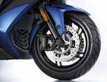 El rodado delantero es en medida 120/70–15, mientras que el trasero es 50/70–14, el doble disco delantero es de 280 mm cada uno.