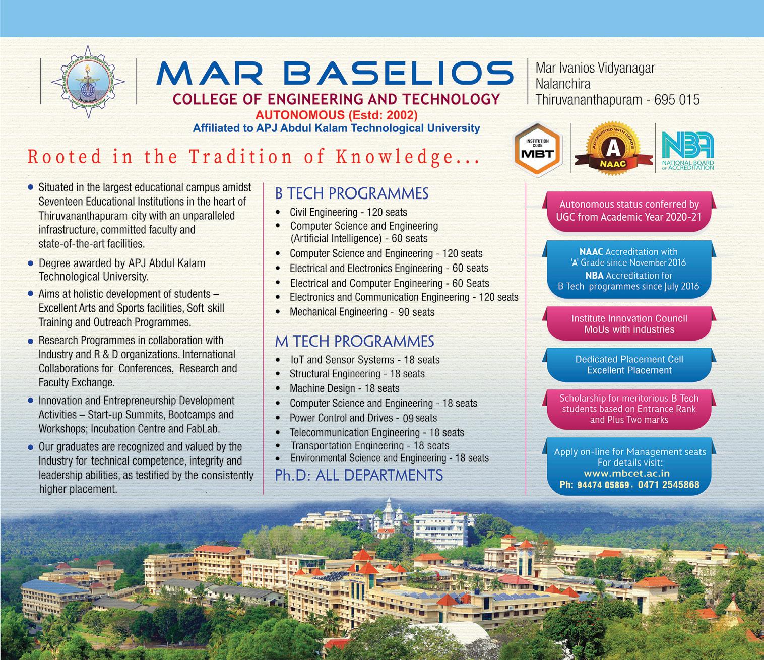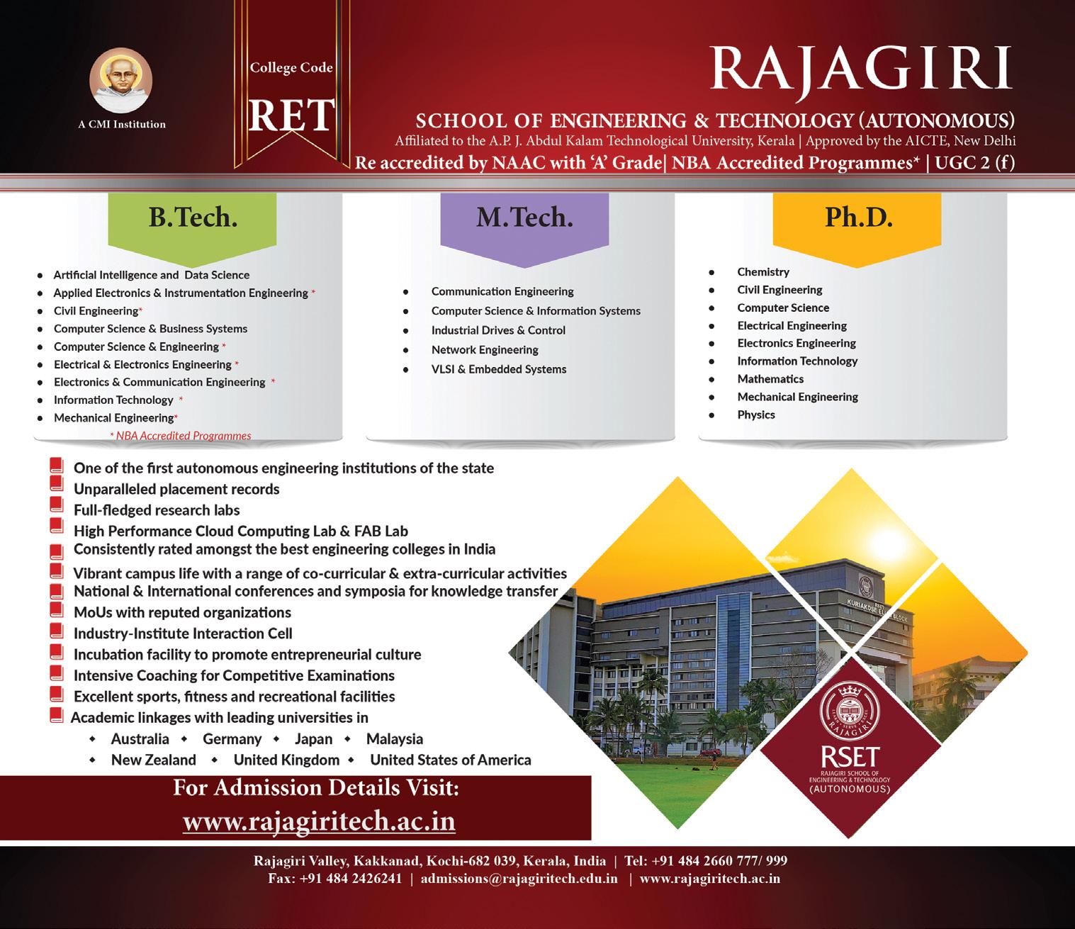 Located in the Industrial Belt of Kochi | Experienced and Dedicated Faculty | Special Training in Soft Skills & Communication | Institute & Industry Interaction Excellent placement record Wi-Fi Campus Ham Radio Club | Specialised Language Lab | Highly Resourceful Library | Wide subscription of Online Journals | Well Equipped Laboratories | Conveyance to important points of City & Suburbs | Toastmasters Club | Centre for Innovation, Incubation & Entrepreneurship | Partners for Placements and Practices | Exclusive Sports Complex B.