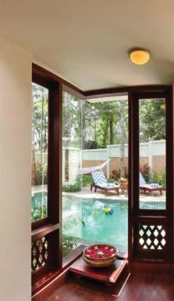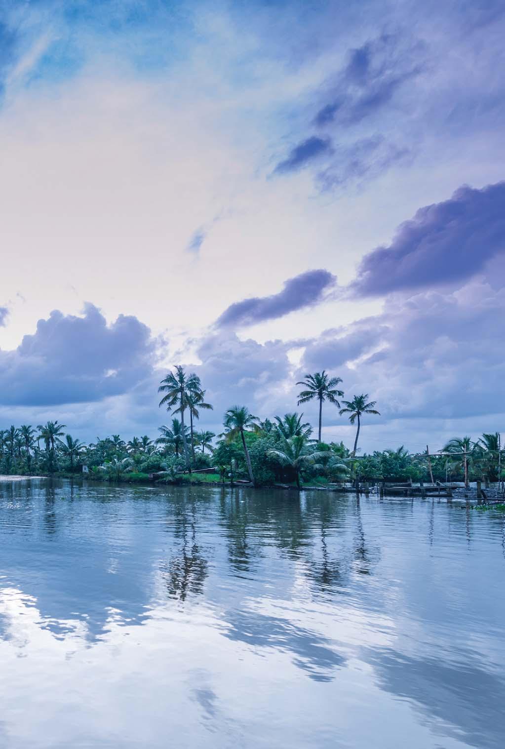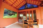 hide-away for those who seek a respite from the strenuous pace of modern existence to rejuvenate the body and mind in idyllic, tranquil environs. The resort is spread over a sprawling riverside plot, under the canopy offered by the lush growth of coconut palms, nutmeg trees and a variety of medicinal herbs.
