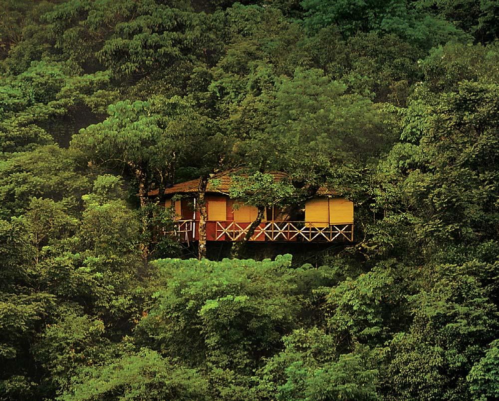 Established in 1994, Vythiri Resort, situated at the heart of the picturesque Wayanad district, 2600 ft above sea level welcomes you to the ecological and geographical features of Malabar. It is a magical, romantic getaway tucked away in a lush tropical rainforest. The resort is parked bang amidst a 150-acre coffee, cardamom and pepper plantation. The exotic experience is the exclusive tree houses that bring to you all the magic of the outdoors. Situated 40ft - 85 ft above ground level, these forest homes are modernized versions of the original tree huts known as ERUMADAMS used by the tribal communities as a place to track down the wild animals as also to keep a safe distance from them. Created entirely out of locally available, eco-friendly, bio-degradable materials by the tribal people, the tree houses at Vythiri Resorts come with all basic facilities inclusive of bath attached bedrooms, accessed by wooden steps. The delightful interiors coupled with panoramic views of the mist shrouded Western Ghats makes for an exciting experience. Bird watching, rainforest treks, visits to nearby spice plantations and picnic spots are some of the activities that you can i ndulge in during your stay here. Vythiri Resort has its very own trekking routes complimented by a hanging bridge and a natural swimming pool, the foreground of which doubles as a stage for cultural shows. An old British Colonial retreat, Vythiri is a holiday waiting to be discovered and rediscovered, always fresh and completely unspoiled. Central Reservations: LEZELD'OR, MNRA 150A, Maveli Nagar, Pipeline Road, P.O. Changampuzha Nagar, Kochi - 682 033, Ph: +91 484 2864800, 98951 75555, 93875 55250, Email: vythiri@lezeldor.com, marketing@lezeldor.com, www.vythiriresort.com