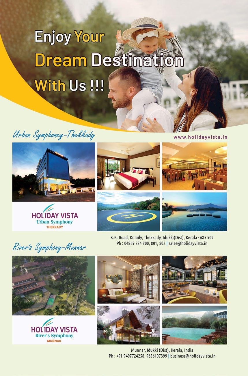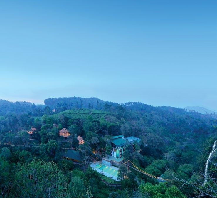 Established in 1994, Vythiri Resort is located amidst the breathtaking scenery of Wayanad district, sitting at an elevation of 2600 ft above sea level. This tranquil haven invites you to explore the ecological and geographical wonders of Malabar. Nestled within a 150-acre coffee, cardamom, and pepper plantation, the resort offers a magical and romantic escape within a lush tropical rainforest. A true highlight of this experience is the resort’s exclusive tree houses, perched between 40 to 85 feet above the ground. These tree houses provide a modernized twist on the traditional tree huts known as ERUMADAMS, historically used by tribal communities for tracking wild animals and maintaining a safe distance. Crafted entirely from locally sourced, eco-friendly, and biodegradable materials by tribal artisans, these tree houses offer essential amenities including attached bathrooms, accessed through wooden stairways. The enchanting interiors of the tree houses, coupled with sweeping views of the mist-covered Western Ghats, create a truly exhilarating experience. Guests can engage in various activities such as bird watching, rainforest treks, visits to nearby spice plantations, and picnics during their stay. Vythiri Resort boasts its own trekking routes, complemented by a hanging bridge and a natural swimming pool. The foreground of the pool also serves as a stage for cultural performances. Originally an old British Colonial retreat, Vythiri is a hidden gem, waiting to be explored and rediscovered, offering a consistently fresh and unspoiled holiday experience. Central Reservations: LEZELD’OR, MNRA 150A, Maveli Nagar, Pipeline Road, P.O. Changampuzha Nagar, Kochi - 682 033, Ph: +91 484 2864800, 98951 75555, 93875 55250, Email: vythiri@ lezeldor.com, marketing@lezeldor.com, www.vythiriresort.com