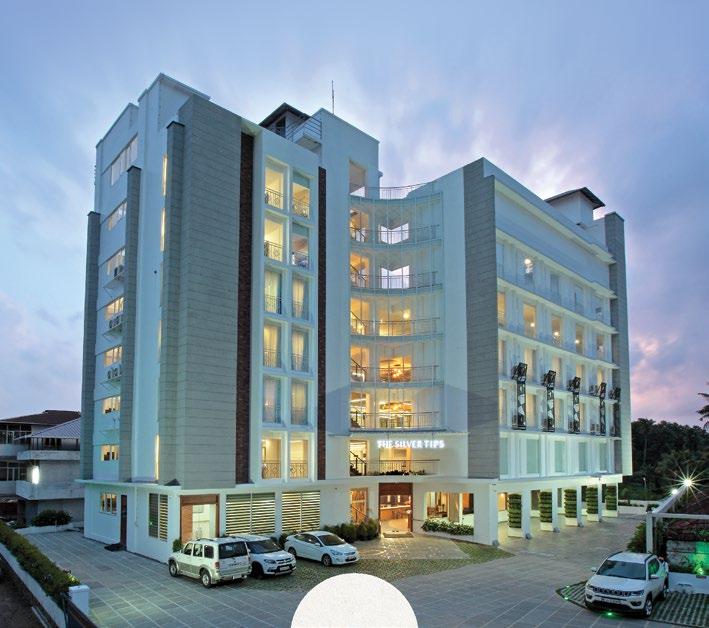 Silvertips is situated at Kothamangalam town, known as the Gateway to the High ranges in the foothills of the Western Ghats. It is the perfect location to stay in, away from the hustle and bustle of the fast city life. Situated on the banks of the Periyar River, the location enthralls all and ensures ample opportunities for enjoying complete comfort. The town is the best travel hub from where it is easy to access various locations like Munnaar, Thekkady, Vagamon,Thattekkaad, Kodanad, Bhoothathaankettu, Cheeyapara water falls , Valara Water Falls and Paniyeli. The Silver Tips presents you with ample apportunities to repose in various comforts. Deluxe Rooms, Deluxe Executive Rooms and Ayurvedic Suites are available. The rooms are beautifully themed, based on the Thattekkaad Bird Sanctuary. The hotel has a travel desk, in-house laundry, 24-hour coffee shop, multi cuisine restaurant, conference halls and other state of the art facilities. The Ayurvedic treatment centre is operated by Maurya Ayurveda, famous for their ortho neuro rehabilitation and alternative treatment. Guests can avail of breakfast, bottled mineral water, internet access, newspaper and valet parking on a complimentary basis. Wheel chair, multi channel entertainment and other high quality guest amenities are available on request. Suitable provisions are available for holding birthday parties, private dining, charity events and film shoots. Central Reservation: +91 95678 64152.
