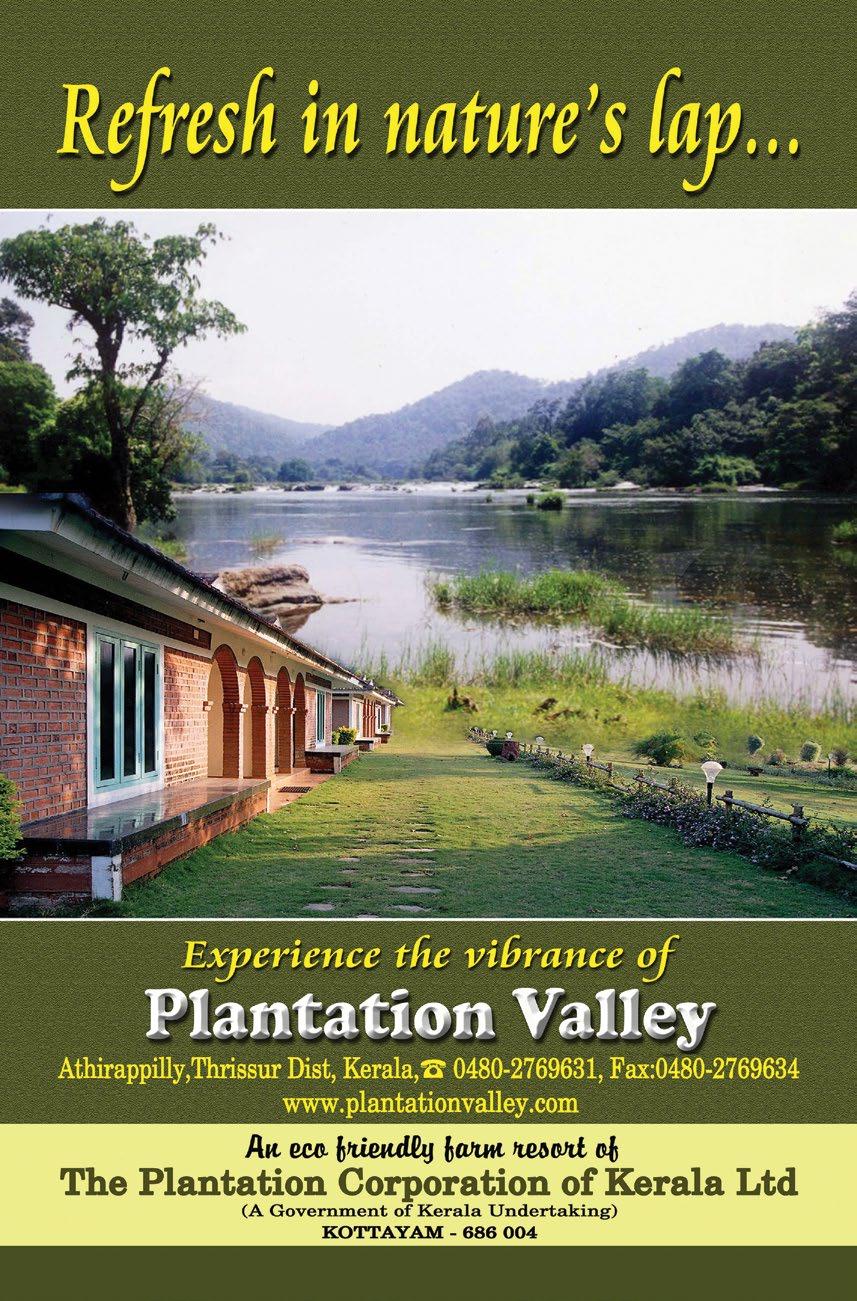 One more tourist destination was added to Kerala Tourism when the state’s first eco-friendly farm resort ‘Plantation Valley” was launched at Athirappilly near Chalakudy in 2002 by the Plantation Corporation of Kerala. Reposing in nature’s lap, pampered by the meandering ebb of Chalakudy River, this idyllic resort and valley is a tourist destination for all but with a change. The quiet refreshing ambience is unique amidst the grandeur of amazing waterfalls and it is here that the cottages have been spruced up to make your stay a divine experience. The resort is situated 32 kms to the east of Chalakudy, a bustling town in Thrissur District. With easy access to Nedumbassery airport (55 kms) and Chalakudy Railway Station (33 Kms) the valley is not only a film makers paradise; there is something in the valley, nature has to share with all who drop in for a stay. An ideal respite or weekend out for the stressed, far from the tensions of daily life, there is no place refreshing like Plantation Valley. Also a very convenient holiday treat if you plan your itinerary to tourist haunts like Vazhachal with its pristine Peringalkuthu and Sholayar Dams (20 kms) deep in the forests on the way to Valpara and the Athirappilly dam (1.5 km away). For those who aspire to cleanse their souls, it is good to halt for a day and with easy access to Guuruvayoor Temple (70 kms away), the famous Kodungalloor Temple (60 kms) and Malayattoor Church (15 kms). Conveniently located on the banks of the Chalakudy river, offer luxurious accommodation to suit your needs. Lavishly appointed 6 cottages (12 A/c Rooms) with sprawling patios for each room, give you privacy with a un-interrupted view of amazing waterfalls, flirting winds, whispering brooks, curious animals and birds, long and winding pathways etc. There is ample parking space and the spacious living rooms ensure that you relax in style with all privacy. A Multi Cuisine Restaurant crafted exquisitely with our own Rubwood furniture caters to formal business lunchess or intimate family dinners with the finest gourmet delicacies. There is always our sprawling garden too if it suits your style for a party session in the lawn or even a campfire gathering to ignite your imagination. For the Convenience of your extensive Business Clientele we have a well set conference hall ideal for Formal Workshops, Seminars and Imparting Training or even convening board Meetings. Besides the thrill of being one with nature, you can add fun to your stay with any out door game of your choice, discover birds in their habitat, a bit of angling, swimming in shallow fresh waters or even short jungle walks. We strive to make you at home in our resort and are committed to make your holidays special without depriving the lush green valley of its calm and peaceful ambience. Besides the thrill of being one with nature, you can add fun to your stay with any outdoor game of your choice, discover birds in their habitat, a bit of angling, swimming in shallow fresh waters or even short jungle walks. We strive to make you at home in our resort and are committed to make your holidays special without depriving the lush green valley of its calm and peaceful ambience. You plan your holiday and Plantation Valley makes it an event to treasure.