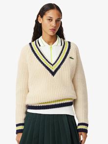 Lacoste Oversized Wool V Neck Tennis Sweater $240