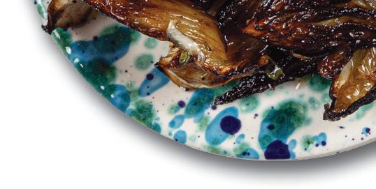 heat, add a tablespoon or two of olive oil and/or butter (both is best), then place the wedges in a single layer in the skillet. Season with salt and pepper and cook, watching that the fennel doesn’t scorch but rather achieves a lovely caramelized color. When the rst side is browned, gently turn the wedges, adding a splash of oil or butter if the skillet seems a bit dry, then add a scant tablespoon of water and cover the pan. Continue cooking the fennel, lowering the heat a little. Check every few minutes to see that the fennel turns a beautiful, deep golden brown, lowering the heat if you think the fennel will burn. Test for doneness by poking the point of a knife into the thickest part of the fennel. e knife should meet only modest resistance and will be ready to serve. To take it to another level, try mixing equal parts coarse breadcrumbs (panko) and grated hard cheese , a generous splash of oil , crushed red pepper , thyme leaves and a little lemon zest . Generously sprinkle the mixture over the wedges of fennel, then place the skillet into a hot oven and cook just long enough for the breadcrumb mix to gratinee and become crunchy and toasty brown. Serve immediately. It would be lovely accompanying a nice piece of sh, a few slices of prosciutto, or just a fresh green salad.