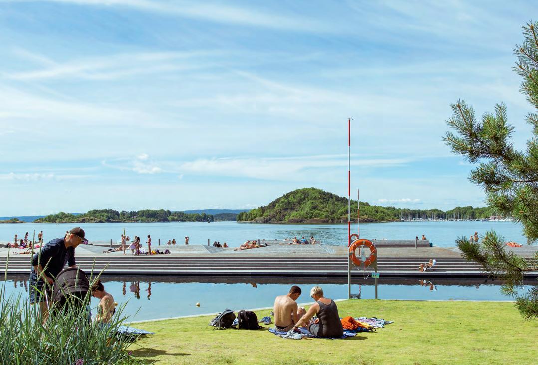 sykkeltur. Her finner vi også byens best besøkte badestrand Huk og den sjarmerende Paradisbukta.
