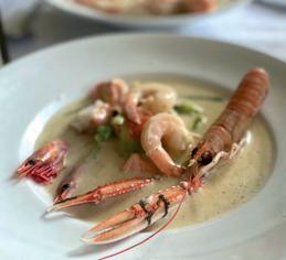 Ettersom jeg gjerne prøver flere retter når jeg er innom en restaurant, så jeg ingen grunn til å stoppe ved biffen. Etter anbefaling fra innehaver Tas, var husets hovmester Hugo raskt på pletten med en imponerende nydelig innbakt fiskegryte. Tas fortalte at de serverte denne retten enten med fisk, lam, okse, eller kylling, og at hemmeligheten med de fantastiske smakene var 7-8 timers «slowcooking» på lav varme. Kvelden ble toppet med innehaver Tas egen franskinspirerte konfektkake. En herlig smaksrik dessert som antagelig dekket kaloribehovet vårt for en ukes tid.