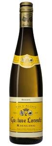 100% Riesling. Alkohol 12.5%, syre 7,5 g/l, sukker 2 g/l. Lys strågul. Mineralsk duft med hint av sitrus. I munnen oppleves den som lett, tørr og delikat med en stram og mineralsk tone som går over i grønne epler og sitrus. Lang flott syrlig avslutning. Dette er perfekt til mange forskjellige retter som for eksempel fisk og skalldyr fra grillen, lyst kjøtt som kylling og svin med tilbehør, geitost alene eller i en salat. Liker du Riesling passer Gustave Lorentz Riesling Reserve meget godt som bare et forfriskende glass med vin. Basisutvalget.