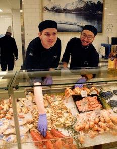 diskene av sesongens beste råvarer, og assisterende butikksjef Edita Gagula er ikke i tvil: “Vi har verdens beste råvarer i dette landet,” sier hun entusiastisk, mens hun viser oss rundt i butikken. Hjertet i butikken er den imponerende ferskvaredisken. Som ihuga ferskvareentusiast lar vi oss imponere over både utvalget og det visuelle inntrykket av diskene. Edita nikker entusiastisk og kan fortelle at det visuelle inntrykket av diskene er svært viktig.