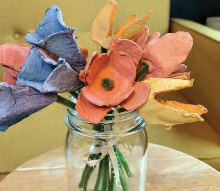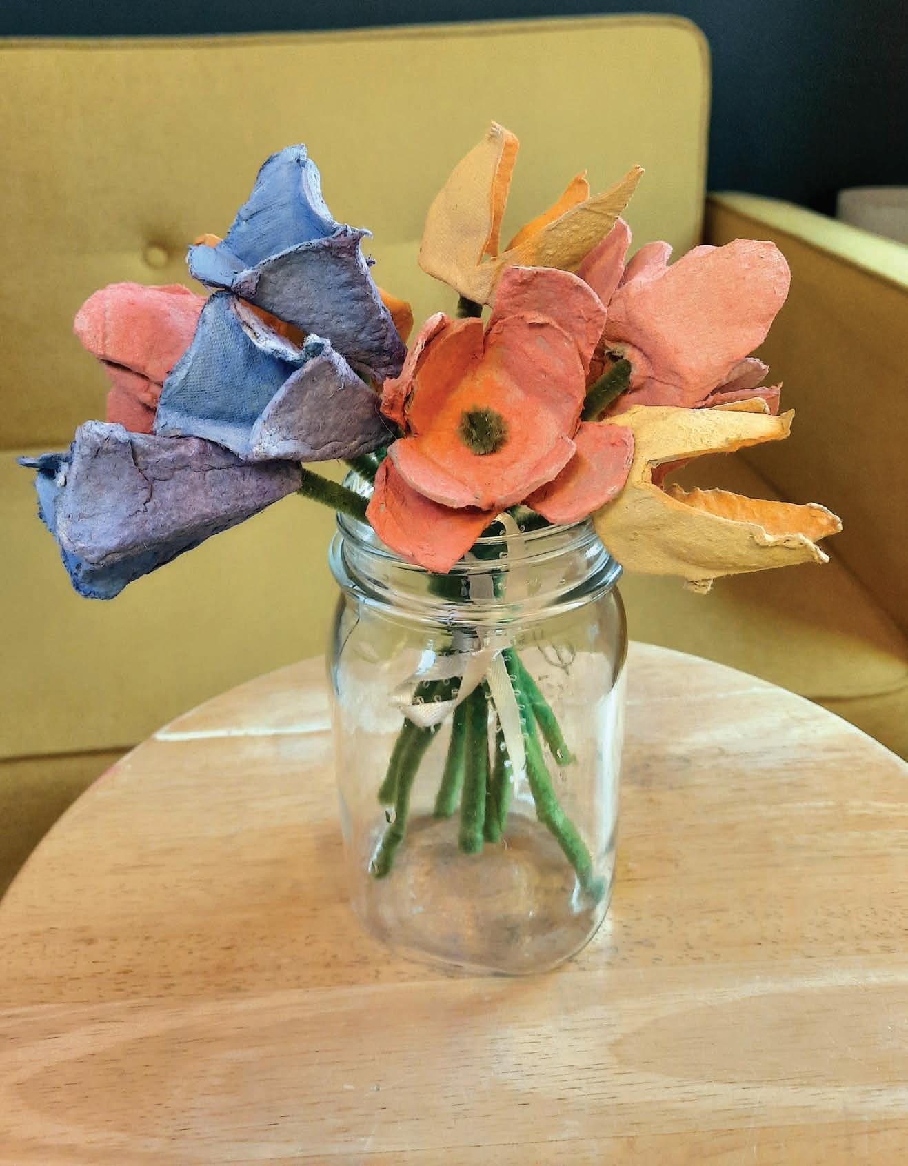 • For tulips, use one egg carton cup and cut the sides into four pointed petals.