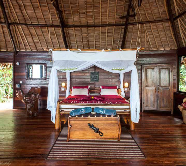 Tsara Komba Luxury Beach and Forest Lodge is situated on a hillside location in Nosy Komba island off Nosy Be. In the heart of breathtakingly beautiful natural environment between the forest and the beach, the eight lodges all offer an incredible sea view and promise delicious breakfasts at sunrise and a colourful end to your day with a romantic dinner under the stars. The trees and shrubs around the lodges provide for utmost privacy.