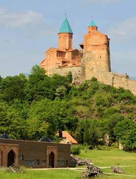 wineries and carpet workshops, with colorful facades with carved balconies, are a pleasing blend of Italian and Persian architectural styles. Later drive to visit Giuaani winery in the Village Manavi. Have an excursion in the winery and taste local wines. Enjoy lunch with traditional Kakhetian dishes. Back to Tbilisi visit Sameba Cathedral - the biggest cathedral in the Caucasus (84m). Enjoy free time on the last evening in Tbilisi. (B/L)