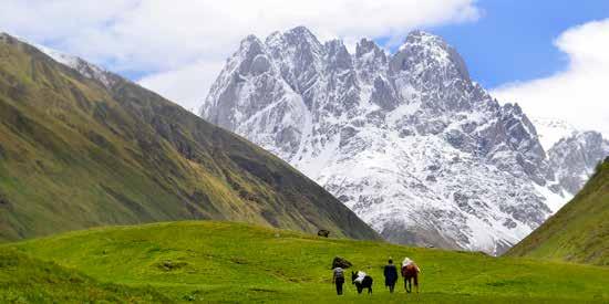 Georgia enjoys temperate weather with mild winters and long, hot summers. The climate ranges from subtropical Mediterranean in the west to arid and warm in the east. Summer temperatures average +20 °C to +26°C, winter temperatures 0°C to +4°C. Humidity is lower, and rainfall averages 500 to 3500 mm per year. The best season for cultural and outdoor tourism in Georgia is from the mid-April to the midOctober. From the mid-December to April winter travelers are welcome in countries’ 4 Ski Resorts.
