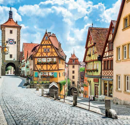 Strolling along the cobbled streets with the ancient town walls of Rothenburg ob der Tauber you’ll select your favourite from an array of restaurants, each with its own unique atmosphere and local specialties. Whether you’re looking for local Franken cuisine or international favourites. Experience on Best of Germany, p.118.