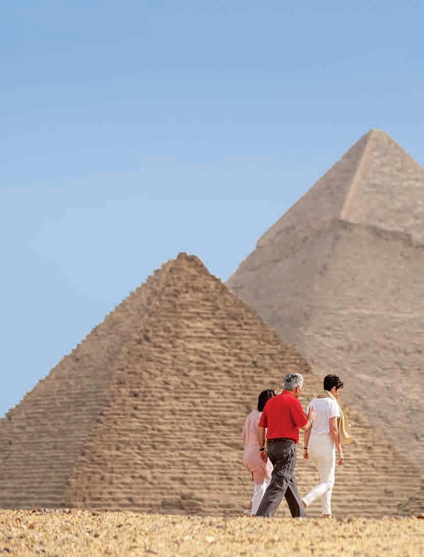 Sail along the Nile aboard a traditional felucca (3), past the Philae Temple Complex and the Temple of Isis. Under the guidance of an expert Sailor (4), you’ll hear fascinating stories about the river’s rich history and cultural significance to the people of Egypt. Experience on Splendours of Egypt, p.176, Wonders of Egypt, and Land of the Prophets