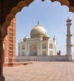 Built in 1632 by the fifth Mughal Emperor in memory of his beloved wife, the shimmering Taj Mahal (1) is one of the Seven Wonders of the World. Explore its stunning marble façade, intricate inlay work (2), majestic domes, and graceful minarets, along with its symmetrical gardens and pools. Experience on Classical India & Nepal, p.198.
