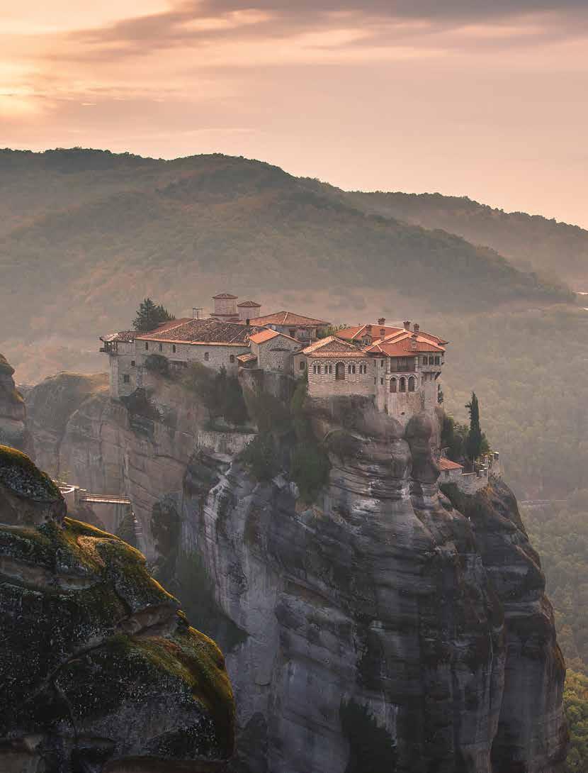 The remarkable centuries-old monasteries of Meteora (pictured), teetering on towers of rock and arguably the most spectacular place to visit in Greece. Meaning “suspended in the air,” these ancient monasteries are suspended at an average of 1,000 feet. Alongside your Local Expert, learn about this jaw-dropping group of monasteries. Experience on Glories of Greece, p.140, Treasures of Greece & The Islands, and Grecian Fables.