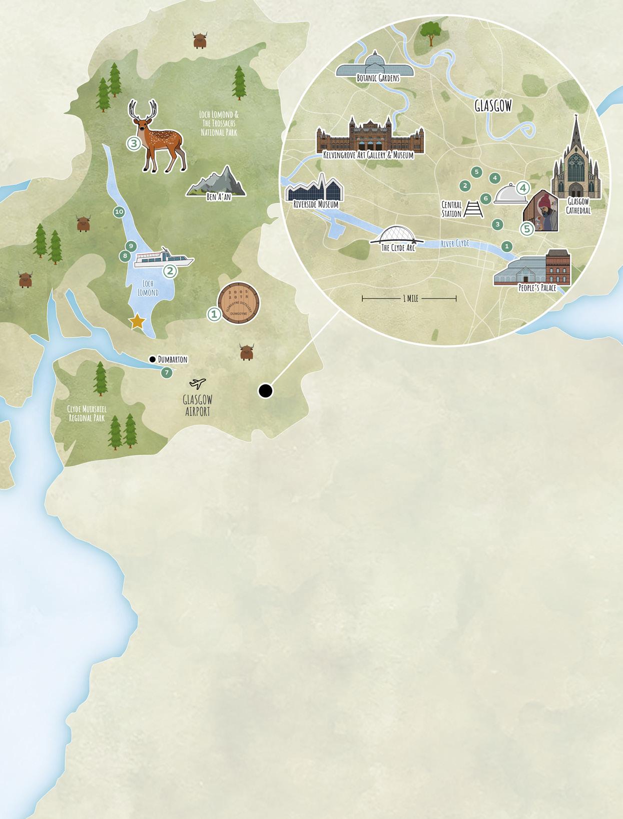 From vibrant urban culture in the bustling city of Glasgow to the idyllic serenity of neighbouring Loch Lomond, the striking contrasts in this beautiful part of Scotland are what make it so special. You’ll get a feel for how the locals spend their time in these drastically different locations while we introduce you to amazing experiences during your visit to this stunning and diverse region.
