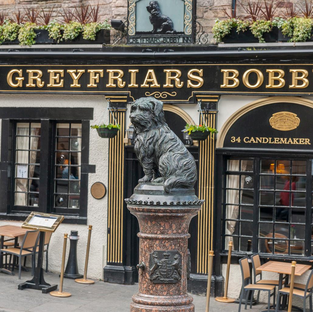 If your thirsty for distillery experiences, head to the trending neighborhood of Leith. At the Leith Distillery (11 Whisky Quay), enjoy a tour, tasting and exploration of the incredible architecture of the world’s tallest distillery. If gin is more your tipple, head to the Lind & Lime Gin Distillery at 24 Coburg St, for a tour that includes bottle filling, cocktail making and of course, tastings. Saving the sweetest for last, Greyfriars Bobby’s Bar at 30-34 Candlemaker Row. Its name was inspired by the Edinburgh legend of a scruffy Skye terrier called Bobby who was the ‘partner’ of police officer John Gray. When John died in 1858, Bobby faithfully watched over his grave and was buried alongside his master in the Greyfriars Kirkyard in 1872. Inside the bar you’ll find an array of Scottish classics and a variety of meat pies. Outside you’ll see a beloved monument to Bobby. Touching his nose is supposed to bring you good luck, which is why it’s noticeably bright and bronze from all the petting over the years.
