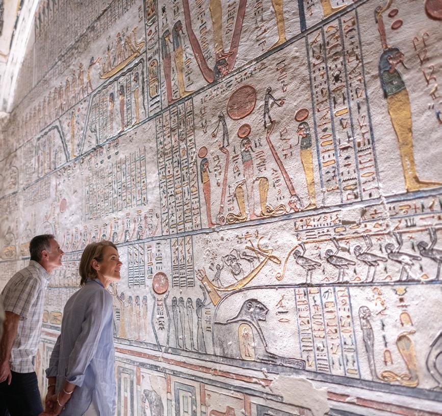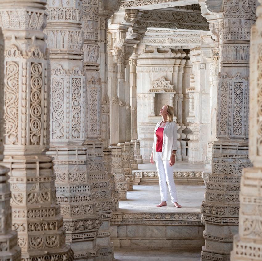 Images, clockwise from left. Explore the intricately carved Jain temples of Ranakpur comprised of 1,500 white marble pillars across its twentynine halls. Day 11, Imperial Rajasthan, p108. Experience the beauty of the White Grotto and Faraglioni Rocks on a private cruise in Capri. Day 4, Ultimate Italy, p20. In Luxor, Egypt, see the Valley of the Kings and the magnificent burial chambers of Tutankhamun. Day 5, Elegance of the Nile, p126. Be immersed while a local shaman performs a welcome ceremony to the Sacred Valley, Peru, and the mystical Andes Mountains that surround it. Day 4, Treasures of the Incas, p90. Day 4, Grand South America, p100. Learn from locals about the process of salt mining using an evaporation technique from the times of the Incas across cascading salt terraces along this scenic canyon. Day 4, Treasures of the Incas, p90. Day 4, Grand South America, p100