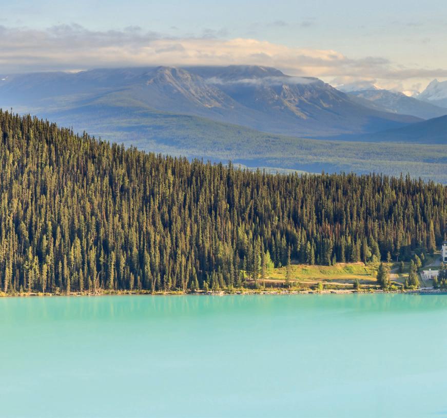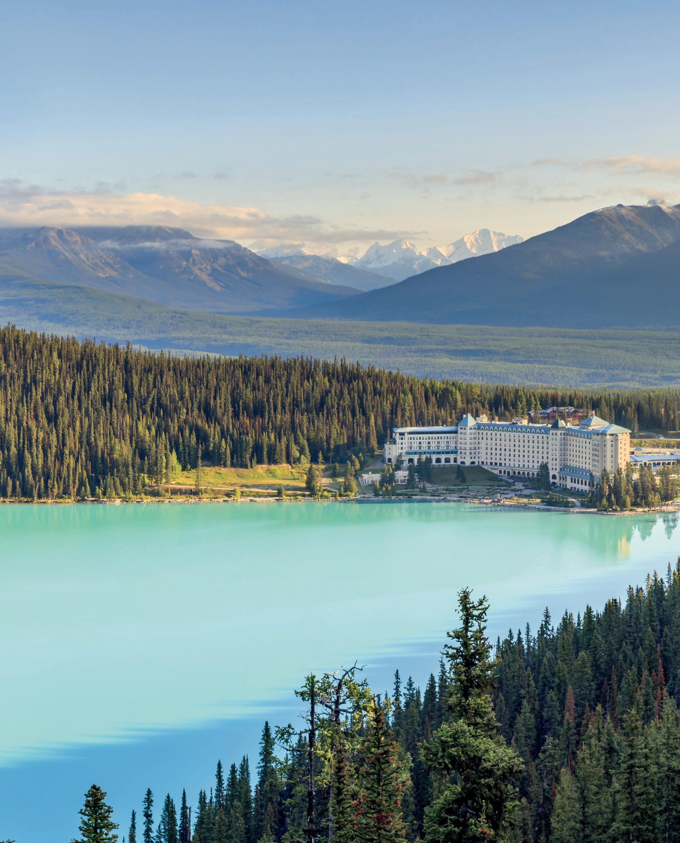 Images, clockwise from left. Arrive by boat across tranquil Lake Pichola to The Leela Palace, India, welcomed.with refined and regal service. Days 11–13, Imperial Rajasthan, p108. Relax in the spa at the 800-year old Ashford Castle, Ireland’s only Forbes five-star hotel and once home to the Guinness dynasty. Days 10–12, Ultimate Ireland, p40. Explore 40 acres of green gardens overlooking Egypt’s Great Pyramids of Giza at Marriott Mena House Hotel. Days 1–3, Elegance of the Nile, p126 . Experience exquisite treehouse-style rooms, some with plunge pools within Kruger National Park, Africa, at Lion Sands Game Reserve. Days 6–9, Spectacular South Africa, p120. Enjoy blissful lakeside scenes at the Fairmont Château Lake Louise within Banff National Park, Canada, a UNESCO World Heritage Site. Days 3–4, Majesty of the Rockies, p76