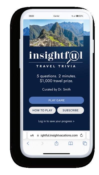Created for the curious, Insight Vacations feeds your thirst for knowledge. You’ll discover the depth behind the iconic locations you’ve read about through hand-selected experiences led by experts in their field, and those in the know Enjoy premium inclusions like stays at 4- and 5-star hotels and travel in customized coaches with extra legroom and personal space. Indulge in premium dining with wine, from dine-at-home experiences, cooking demonstrations to top-rated restaurants, all with industryleading vegetarian options and local, seasonal favorites. insightvacations.com