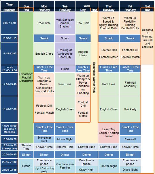 Soon you will be packing your bags and getting ready to leave home and join us for a fun filled experience at King's College Soto de Viñuelas, Madrid. Let us start with a look at how your day will run.