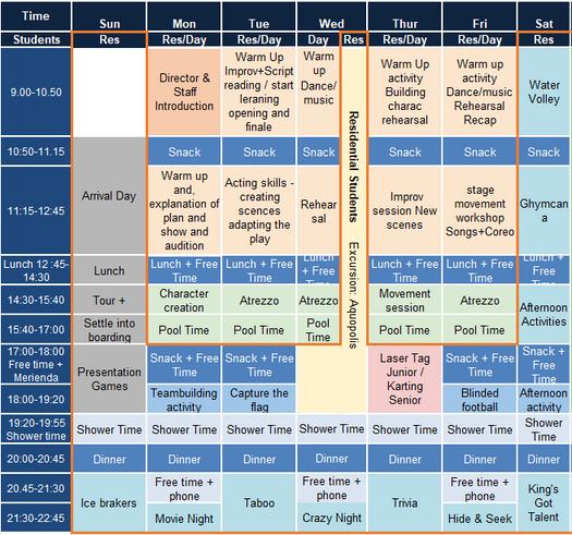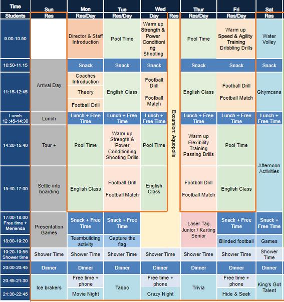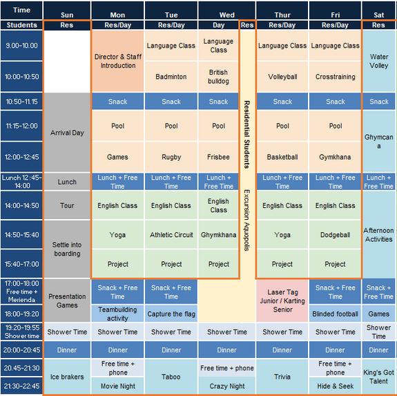 In the afternoon, the students will continue with their language lessons and sports activities until snack time, after which all residential students will gather and prepare for an evening of fun activities.