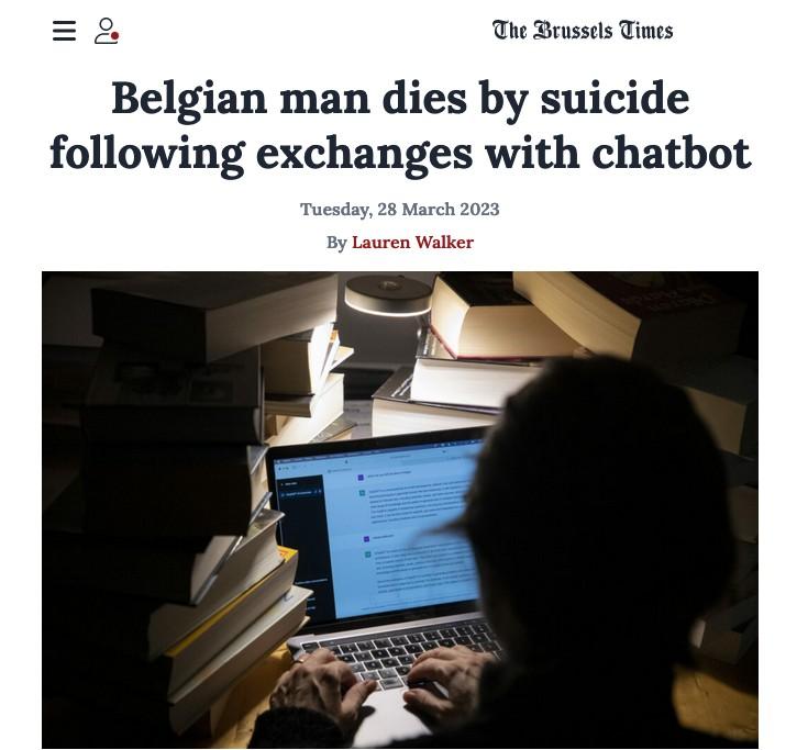 A person in Belgium commits suicide after 6 months talking to a chatbot