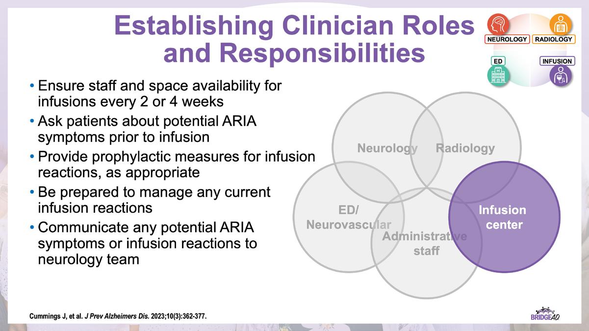» Establish interdepartmental communication regarding administration of antiamyloid mAbs, routine monitoring, and management of adverse events