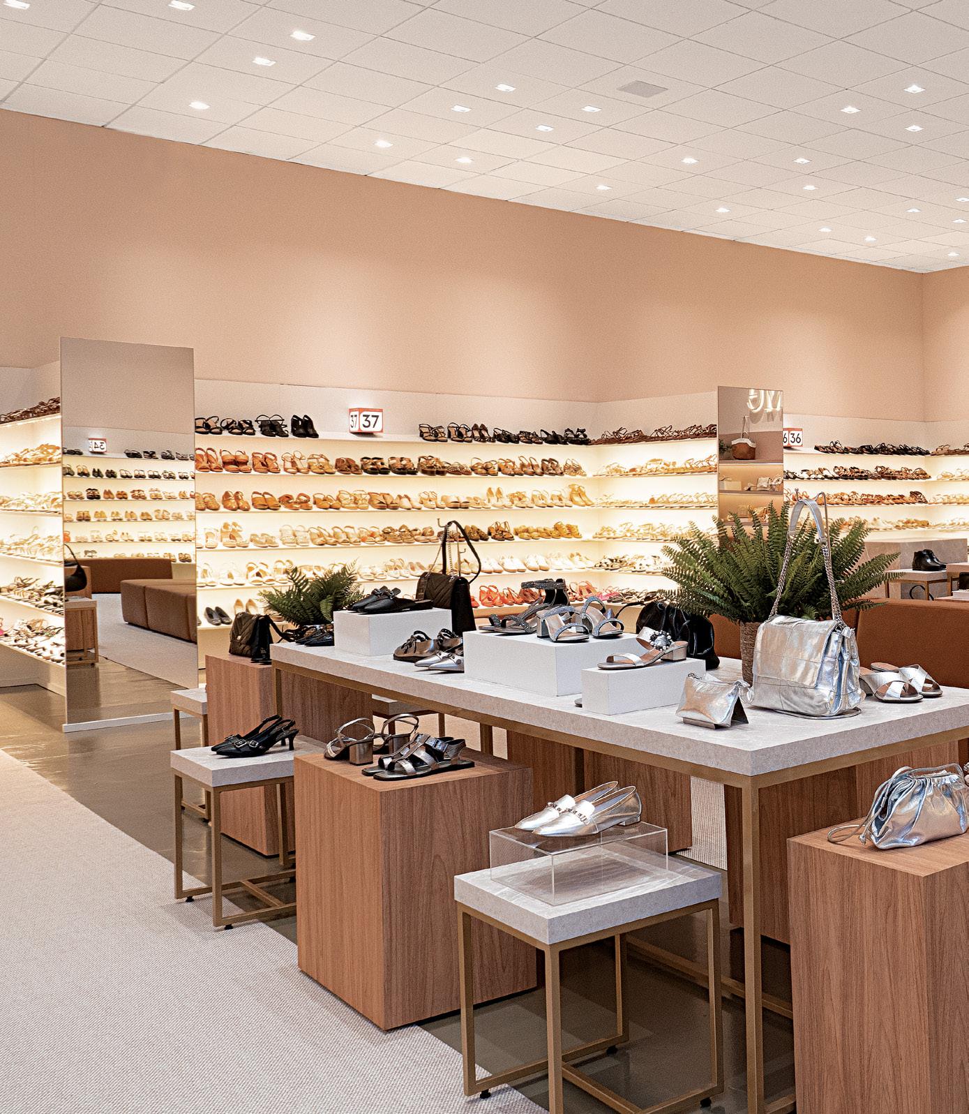 Neste projeto, a proposta foi focada na satisfação do cliente em um ambiente de varejo dinâmico e em constante mudança. A Jamar Móveis executou um mobiliário sob medida que une funcionalidade e elegância, facilitando o acesso aos calçados e acessórios. Sofás e pufes foram estrategicamente posicionados para que os clientes possam experimentar os produtos com conforto, enquanto seus acompanhantes relaxam. A iluminação da Ataluz Iluminação valoriza cada detalhe, tornando a experiência de compra mais atraente e imersiva. Os tapetes da Cláudia Tapetes completam o ambiente, trazendo uma sensação de conforto