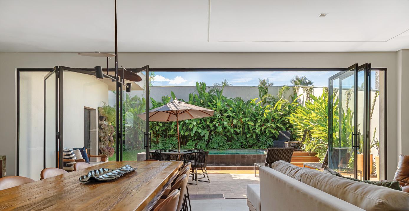 CAROL REZEK E RICARDO AMBRÓSIO Os ambientes internos se conectam ao exterior, onde o paisagismo exuberante inspira uma rotina mais leve e agradável 30 66