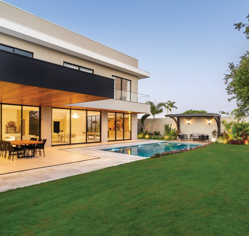 PETRA CONSTRUCTION Nesta casa, o visual contemporâneo ganha a cena a partir de uma arquitetura limpa, com linhas bem definidas