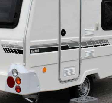 af vognen i bag. Vognen er meget kompakt og uden toiletrum. Modellen, som er vist her, er 365 NN. Bemærk alle modeller har fået nyt hyndestof i sæson 2023, se side 15. 365 NN