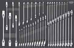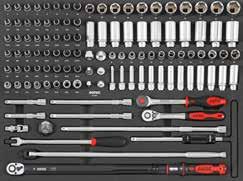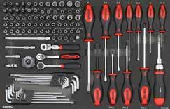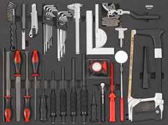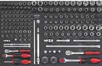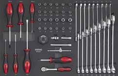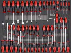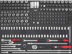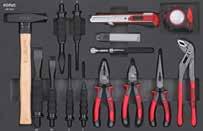 Locking nut assortment 390 Locking pliers 218 Long nose pliers 217 M Magnet pick-up 229 Magnetic bowl 303 Magnetic tray 381 Measuring tape 379 Metal knob for MSS shelves 98 Mirror 228 Monitor and laptop holder 49 MSS (Modular Storage System) 88 MSS+ (Modular Storage Solutions Plus) 70 Multi function socket set 204 Multi purpose pan 382 Multimeter 378 N Nut assortment 388 Nut breaker set 306 O Offset open end wrench 249 Offset open end wrench set, SAE 131 Offset open end wrench set, SFS 152 Offset open end wrench, SAE 249 Oil drain pan 304 Oil drain repair set 298 Oil drain plug remover set 294 Oil drain set 294 Oil filter cap 296 Oil filter pliers 219 Oil filter set 294 Oil filter set, SFS 111 Oil filter wrench 296 Oil pressure set 304 Oil pump alignment plate 326 O-ring assortment 387 Oxygen sensor socket 303 Oxygen sensor wrench 303 P Panel remover 226 Paper holder for NEXT toolbox 59 Paper holder for toolbox originals 61 Petrol engine test set 305 Pin assortment 387 Pin punch 221 Pin punch set 221 Pliers 215 Pliers holder for MSS 96 Pliers set, SFS 111-113, 122-124, 127, 137-138 Precision screwdriver set 212 Protractor 397 Pry bar 228 Pry bar set 287 Pry remover set 288 Puller 302-303 Puller set 291 Pulley wrench set 292 R Radiator hose remover 226 Radiator pressure test set 305 Ratchets 158 Ratchet screwdriver 211, 267 Ratcheting wrench 247 Ratcheting wrench set 254 Ratcheting wrench set, SFS 110, 121-122 Recycle bin for MSS+ 74 Recycle bin for MSS 91 Refractometer 295 Repair set ratchet 157-159 Repair set swivel handle 160 Repair set torque wrenches 241 Repair set universal joint 163 Reversible puller 302 Ring wrench 249-250 Ring wrench set, SAE 251 Ring wrench set, SFS 111 Ring wrench, SAE 249 Riveting nut pliers 308 Riveting pliers 219 Roller seat 382 Rubber mat for NEXT toolbox 58 Rubber mat for toolbox originals 60 Ruler 379 S S7 NEXT toolbox 12-13 S8 NEXT toolbox 14-17 S9 NEXT toolbox 18-25 S9 VAS toolbox 50-51 S12 NEXT toolbox 26-31 S12 VAS toolbox 52-53 S12XD NEXT toolbox 32-35 S13 NEXT toolbox 38-40 S14 NEXT toolbox 42-45 S15 NEXT toolbox 46-49 Sample set, BMCS 256, 401 Saw 223 Scissor jack 364 Scraper 226 Scraper set 287 Screwdriver 209 Screwdriver holder for MSS 96 Screwdriver set 212 Screwdriver set, SFS 106, 115, 127-128, 133, 141, 147, 151, Seal assortment 387 Sealing ring assortment 387 Separating fork 306 Service cart NEXT 54 Service cart 55 Shears 223 Shelf for MSS 99 Shirt 402 Shrink tube assortment 390 Shrinking hose assortment 387 Side table for toolbox 63 Skirting boards 99 Slide hammer puller set 302 Sliding T-handle 161 Slow motion system for reels 371 Snap ring assortment 387 Snap ring pliers 217 Snap ring pliers set, SFS 112, 123-124, 127, 137, 140 Socket set 204-206, 269