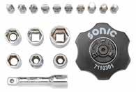 | SONIC-EQUIPMENT.COM 430 Symbols SOCKET FLANK 6 PT BIT SLOTTED BIT SPLINE 12 PT SOCKET 12 PT BIT PH BIT SPLINE 12 PT TAMPERPROOF SOCKET TX BIT PZ SOCKET SPLINE SOCKET 5 LEAVES SOCKET PENTAGON BIT SQUARE BIT 5 LOBES BIT HEX BIT PENTAGON BIT HEX BALL SOCKET TRIANGUAL BIT TX BALL BIT TX BIT TS 5 PT TAMPERPROOF BIT RIBE 24 TEETH 45 TEETH 48 TEETH 60 TEETH 72 TEETH QUICK RELEASE FLEXIBLE HEAD SWIVEL HEAD ROTATABLE HEAD EXTENDABLE 6,3MM (1/4”) SQUARE 10MM (3/8”) SQUARE 12,5MM (1/2”) SQUARE 20MM (3/4”) SQUARE 7,9MM (5/16”) SQUARE 25MM (1”) SQUARE 10MM SQUARE QUICK RELEASE SYSTEM This Sonic catalog (Sonic 2024-2025) replaces all previous catalogues. All artwork is unedited and tools are from current production or from stock. The measures mentioned in this catalog are not binding. While every effort has been made to ensure the accuracy of the information in the Sonic Catalog, we have a policy of continuous improvement states that we reserve the right to vary from printed details without notice in order to keep pace with the latest developments. Copyright: All texts, photos and illustrations are protected by copyright. No part of this material may be reproduced without our written permission. SONIC SAE TOOLS BIT TX TAMPERPROOF 6.3 1/4” 10 3/8” 12.5 1/2” 20 3/4” 7.9 5/16” 25 1” 10 10mm 52