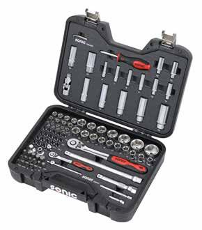 SONIC-EQUIPMENT.COM | 421 Doors and shelves for NEXT toolboxes 59 Door lock dismantling tool 291 Double open wrench 245 Double open wrench set, SAE 131 Double open wrench set, SFS 110, 121, 130, 137, 152 Double open wrench, SAE 245 Double ring wrench 250 Doughnut stretcher 306 Drain pan 303 Drain plug gasket assortment 389 Drain plug key set 293 Drawer rails for NEXT toolbox 58 Drawer rails for original toolbox 64 Drawer rails for MSS+ 84 Drawer rails for MSS 99 Drawers for MSS+ 84 Drawers for MSS 98 Drawers for NEXT toolbox 58 Drawers for original toolbox 64-66 Drawers for topbox 66 E E-circlip assortment 387 Empty tray 96 Empty topbox 277 Engine crane 364 Engine service lit 355 Engine timing kit 310 Engine timing kit, BMW 311-313, 339 Engine timing kit, Chevrolet, Chrysler 315-317, 317, 333, 335,346 Engine timing kit, Fiat, Alfa 317-321 Engine timing kit, Ford 321-327 Engine timing kit, Honda 327 Engine timing kit, Iveco 327 Engine timing kit, Jaguar 328 Engine timing kit, Jeep 329 Engine timing kit, Mazda 329 Engine timing kit, Mercedes 330 Engine timing kit, Nissan 331-332 Engine timing kit, Opel 332-337 Engine timing kit, PSA 338-341 Engine timing kit, Renault, Dacia 342-344 Engine timing kit, Rover, Land Rover 345 Engine timing kit, Saab 346-347 Engine timing kit, VAG, Audi, Volkswagen 347-354 Engine timing kit, Volvo 354-355 Extension 161-163, 292 Extension set 392 F Feeler gauge 380 Fender protection system 382 Fender protector 381 File 224 File set, SFS 113 Filled carry cases 272-273 Filled tool bag 274-275 Filled toolboxes 12-53 Filled topboxes 280 Fitting hook 306 Flag 401 Flare nut wrench 244 Flare nut wrench set 251 Flare nut wrench set, SAE 131 Flare nut wrench set, SFS 110, 121, 129-130, 137, 143, 147 Flare nut wrench, SAE 244 Flexible cable hose clamp removing pliers 291 Flexible hose clip driver set 268 Flywheel/ front pulley locking tool 332, 344 Foam spacer 113, 130, 143 Fork rod set 306 Front panel guide set 351 Front pulley holding tool 314 Front pulley locking tool 332, 344 Fuel pump drive belt kit 353 Fuel pump puller 326 Fuel sender/ pump clamping ring removal tool 294 G Gloves 381 Glow plug joint socket 205 Glow plug pliers 217 Glow plug socket 192 Glow plug socket set 205 Grease nipple assortment 388 Grill cover 381 Grip key sets, SFS 107, 125 Grommet assortment 388 H Half-moon wrench 250 Hammer 223 Hammer set, SFS 112, 122-124, 127 Handle for toolbox 61 Heat gun 377 Hex ball grip key 211 Hex ball grip key set, SFS 107, 125 Hex key set 231-232 Hex key set, SAE 232 Hex key wrench 234 Hex key wrench set, SFS 107 Hex key wrench, SAE 232 Hex nut driver 211 Hex nut driver set, SFS 107, 115, 125 Hinged driver 245 Hinged socket wrench 244 Hinged socket wrench set, SFS 110, 121, 130, 143 Hollow pin assortment 387 Hook 228 Hook for MSS+ 80 Hook for MSS 95 Hook set 227 Hook set, SFS 113 Hose clamp pliers set 291 Hose clamp set 388 I Impact adaptor 163 Impact adaptor set 120 Impact bit holder 164 Impact bit socket 174-175 Impact bit socket set 204 Impact driver 267 Impact extension 162 Impact socket 197-206 Impact socket set 204-206 Impact socket set, SFS 120-121 Impact universal joint 163 Infrared thermometer 377 Injection pump wrench 249 Insert holder for bits 164 J Jack 364 Jack stands 364 Jacket 402 K Key cord 401 Key for NEXT toolboxes 59 Key ring 401 Locks and locking system NEXT toolboxes 59 Locks and locking system MSS+ 85 Key with lock for storage systems 66 Knee pad 381 Knife 224 L Laptop holder for MSS+ 81 Laptop holder for NEXT toolboxes 49 Lights 373-375 Lock ring pliers 217