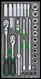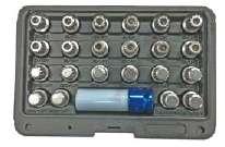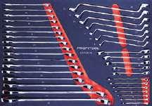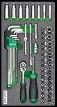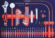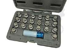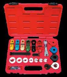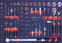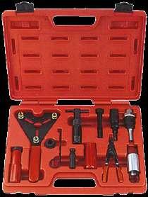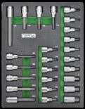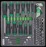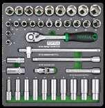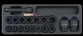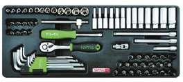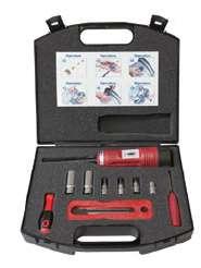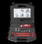 Komplektā ietilpst: - griezes momenta atslēga, - ligzda 7, 11, 12 mm, - Torx bits T10, T15, T20, - griezes momenta skrūvgriezis vārstiem, - skrūvgriezis Torx T6, - vārsta blīvējuma noņemšanas rīks.