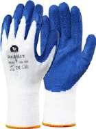 - poliesters / lateksa, - 12 pāri, - krāsa: balta/gaiši zila, - stiprība: 3131; EN 388; EN 420.