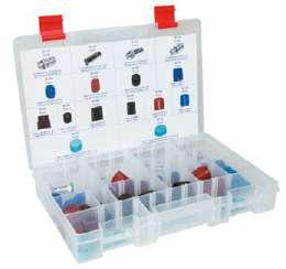 Komplekts TPMS sensoru un vārstu nomaiņai - 12 servisa komplekti, 9 veidu vārsti. Tikai populārākie veidi.