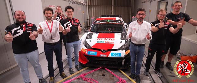 Bartosz Ostałowski tuż po udanej próbie ustanowienia Rekordu Guinnessa wspólnie ze wspierającymi go partnerami, przedstawicielami firm Inter Cars, ZF Aftermarket, Hella i Castrol.